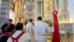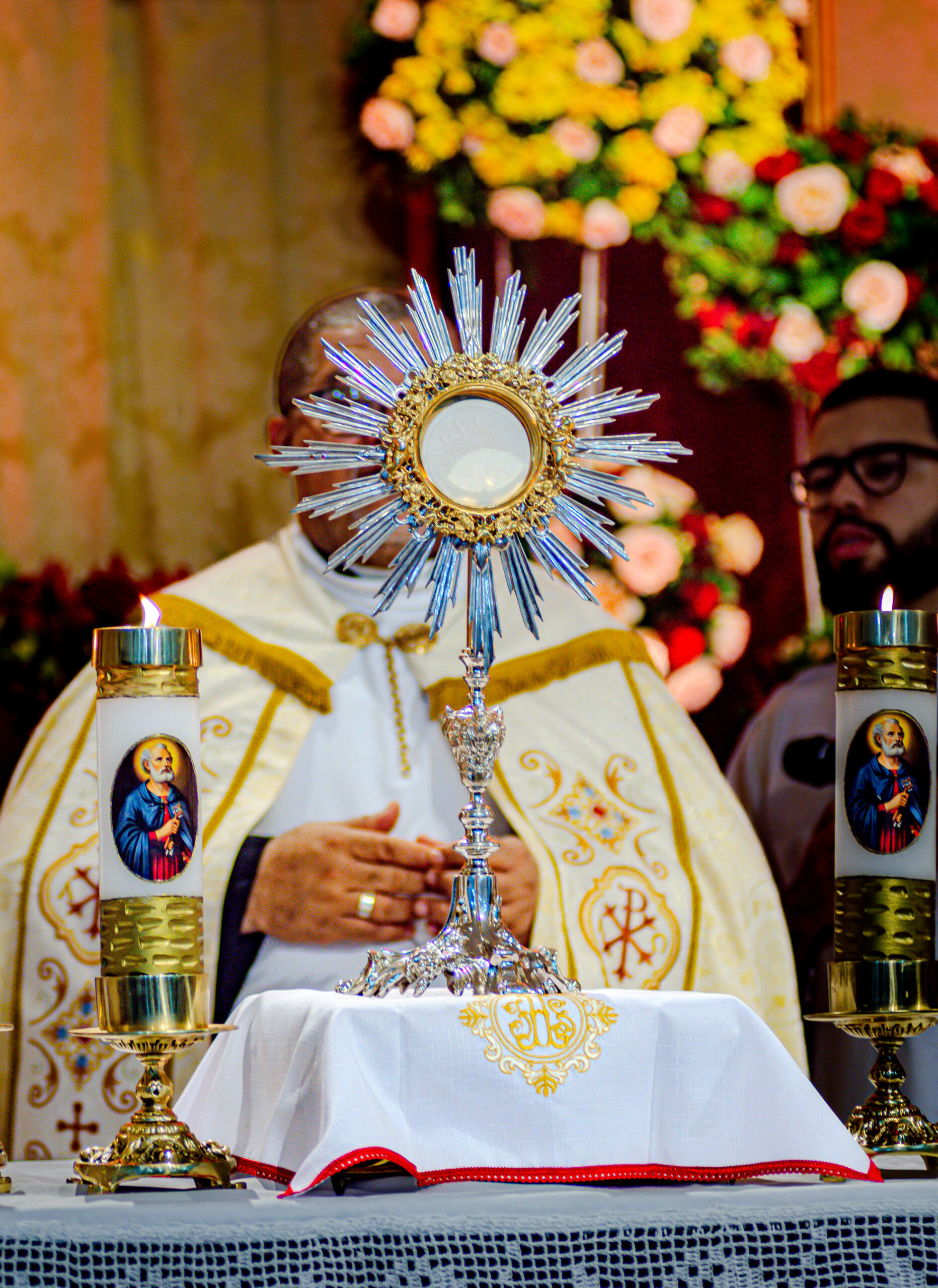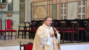 Tanto a adoração aos Santíssimo Sacramento quanto a Santa Missa foi presidida pelo padre Marcio Nunes. Ele que é diretor espiritual do Apostolado da Oração na Arquidiocese. Em sua homilia, reforçou a importância de se abrir ao Amor pleno que jorra do Coração de Jesus sobre cada pessoa, que é no “Sagrado Coração de Jesus que encontramos o perdão que tanto buscamos, somos necessitados de perdão, de amor, de misericórdia”.