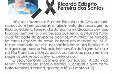 Nota de Pesar – Falecimento de Agente de Pascom Paroquial