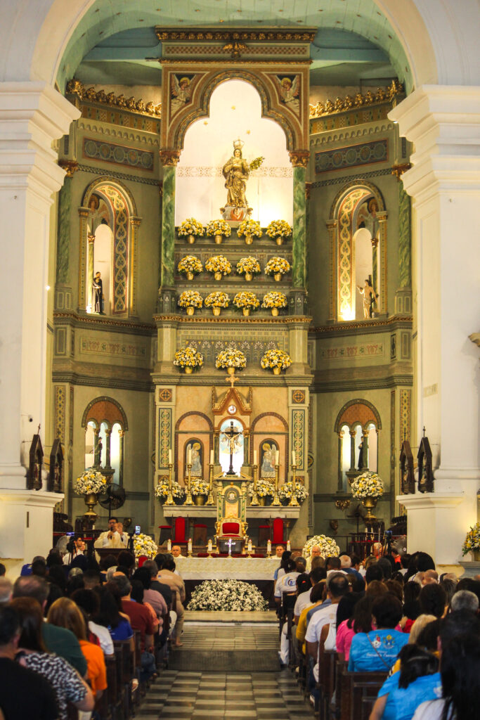 Cônego Elison Silva dos Santos, Pároco da Catedral Metropolitana de Maceió foi o celebrante da noite deste domingo (24), sétima noite do novenário em honra a Nossa Senhora dos Prazeres. “Fortaleza dos que sofrem, rogai por nós!” foi o tema que reuniu membros da Pastoral Familiar, Pastoral da Pessoa Idosa e Cursilhos na Catedral Metropolitana de Maceió, para celebrar sua excelsa padroeira.