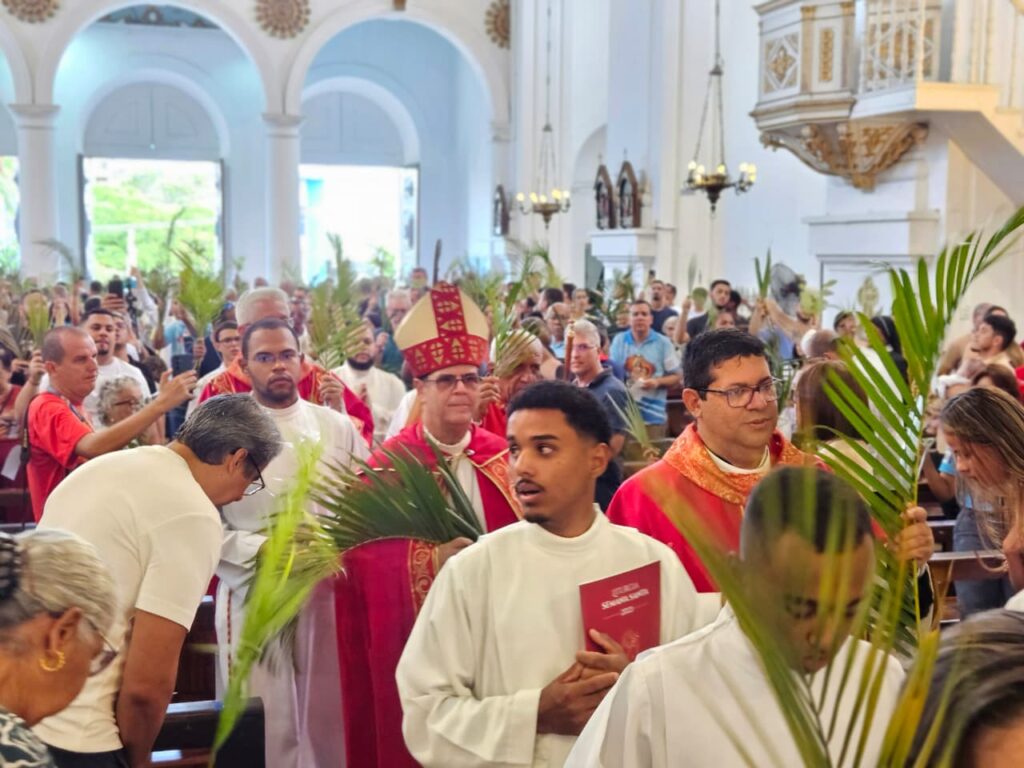 No Domingo de Ramos, celebrado neste dia 29 de março, a Igreja recorda a recepção festiva que Jesus recebeu em Jerusalém. Montado em um jumento, acompanhado por seus apóstolos e sob o chacoalhar de ramos de árvores, Cristo foi recebido como Rei. Mas ali foi também o seu chamado para uma semana de entrega, humildade, rejeição, humilhação, compaixão e exemplo de amor à humanidade. Foi sobre essas características de Jesus que o arcebispo metropolitano, Dom Beto Breis, refletiu com os fiéis que lotaram a Catedral Metropolitana na manhã desse domingo, em uma homilia profunda sobre a trajetória de Cristo na maior semana do calendário litúrgico.