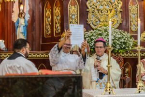 A celebração também foi marcada por testemunhos de paroquianos, como Luanda Margareth, que se emocionou com o momento: “É com muita alegria que participamos dessa posse. O Padre Waldier foi ordenado junto com meu filho. Eu o conheço desde antes do sacerdócio. Sou filha desta paróquia e hoje me sinto feliz por continuar aqui”, disse.